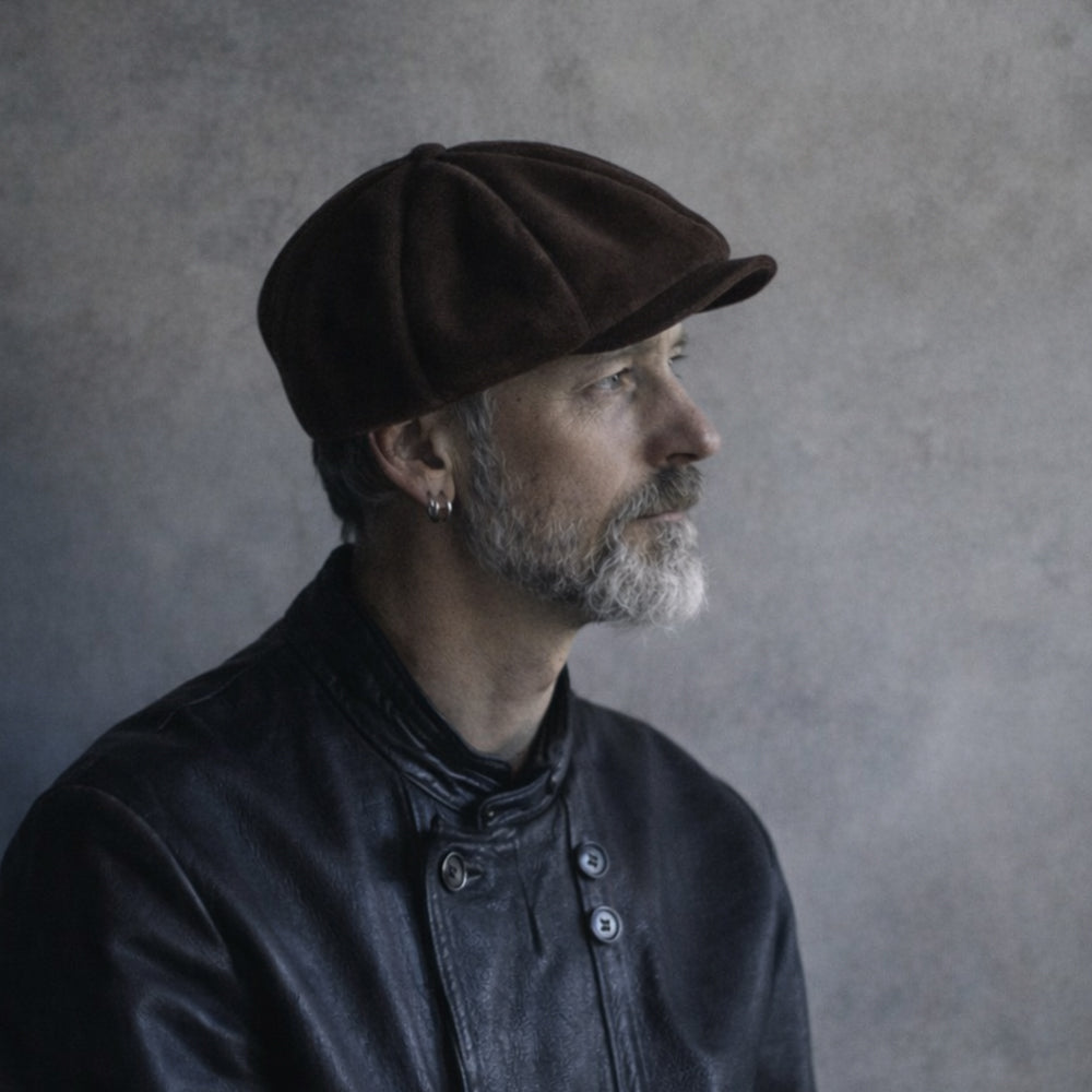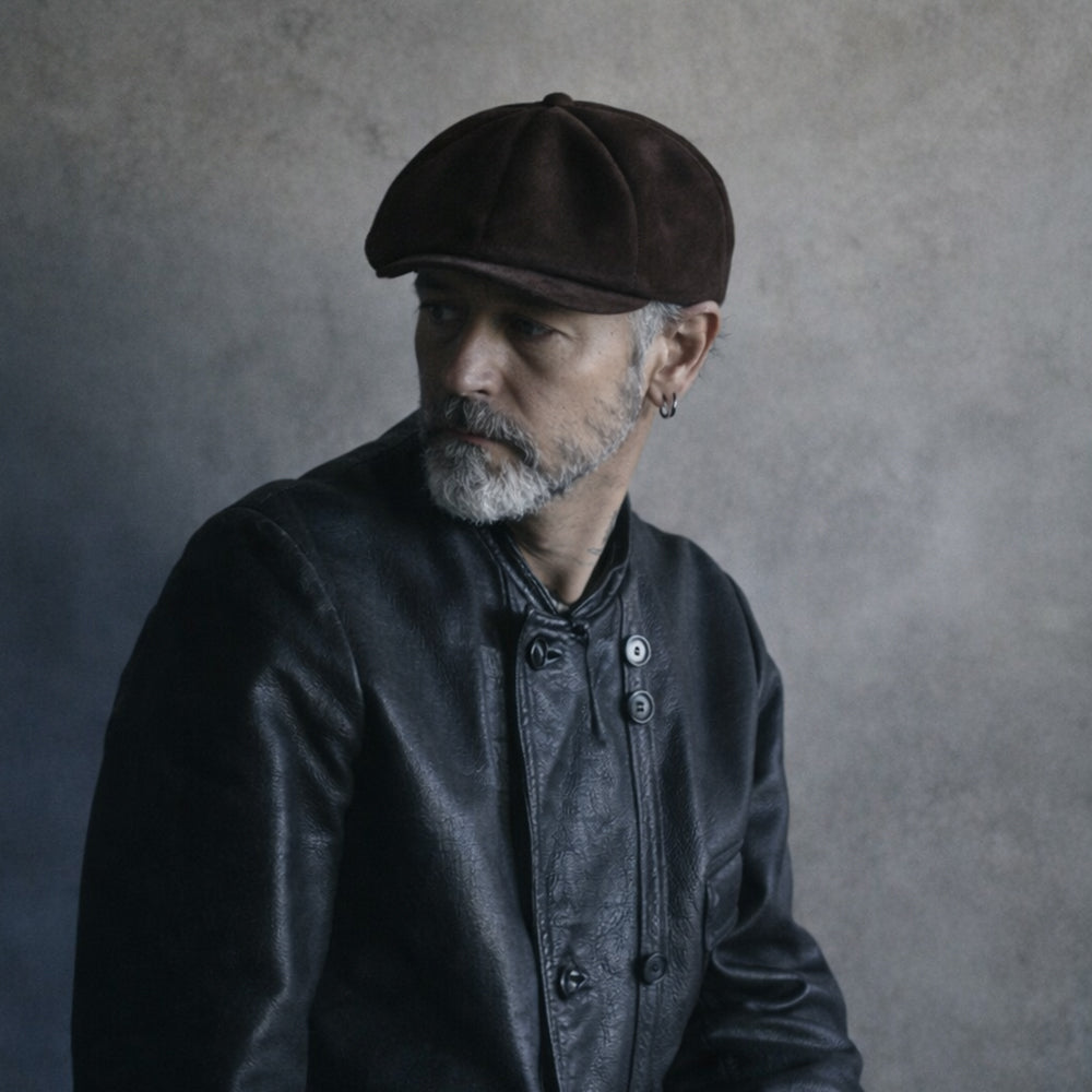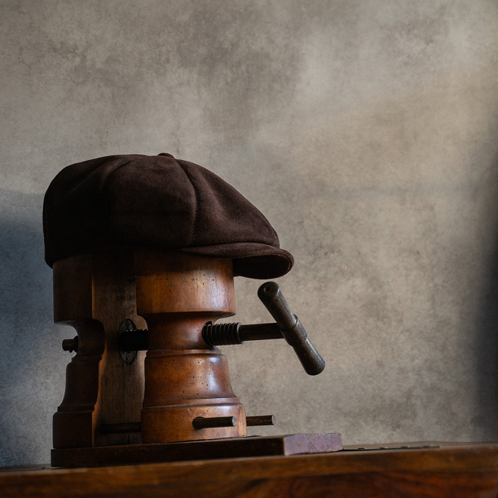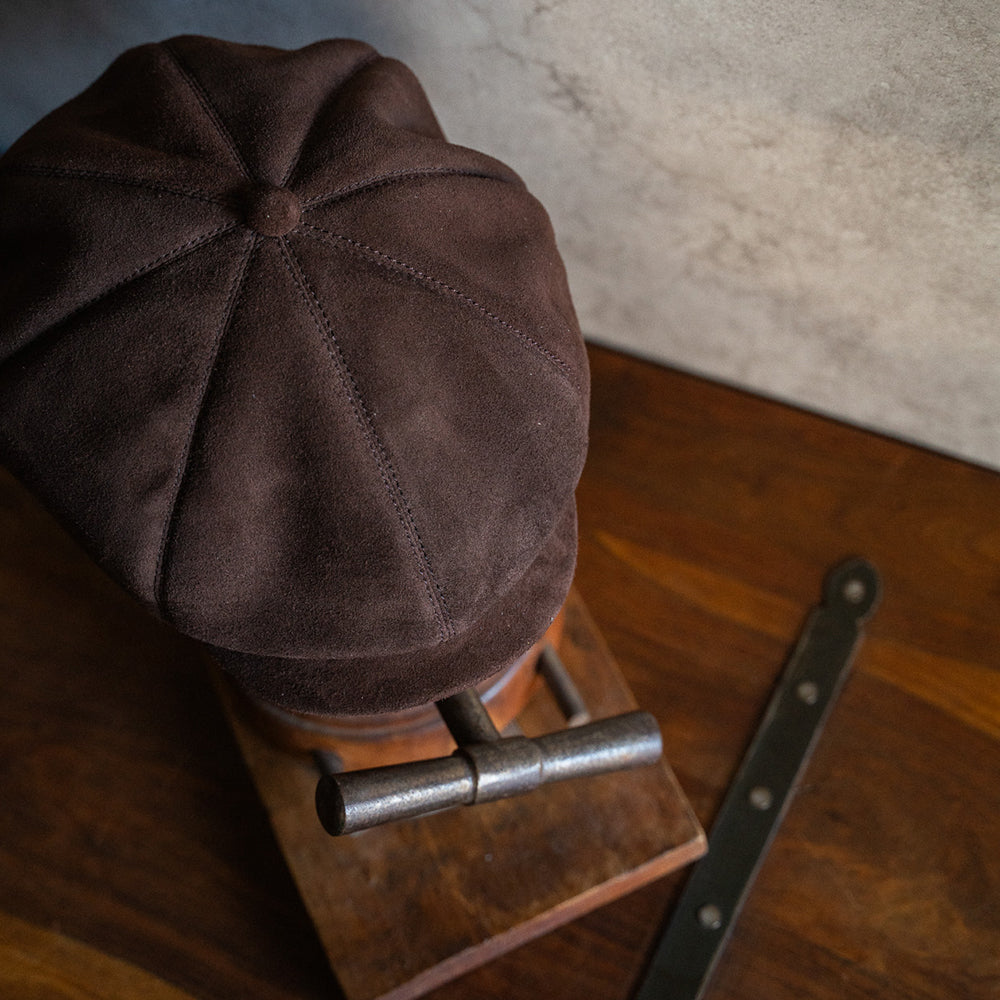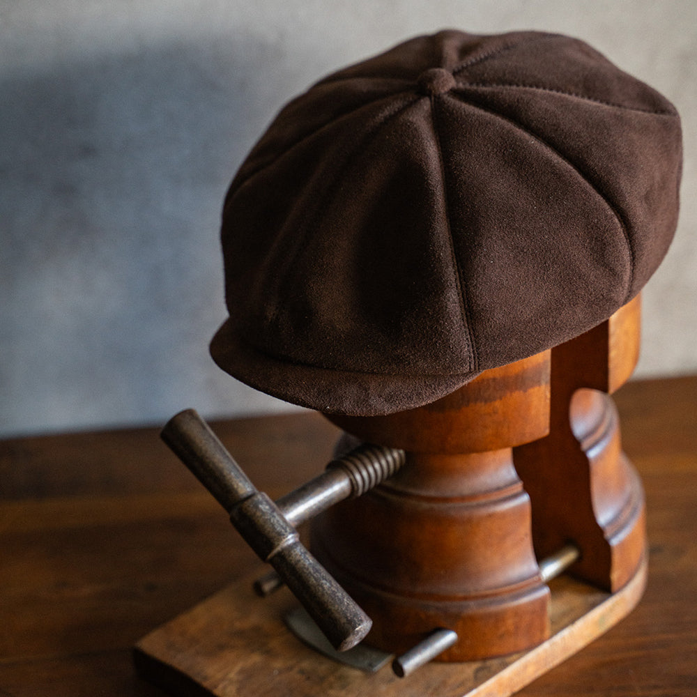 BRUNELでは定番となった8 PANEL CASQUETTEを、ブラウンのディアスエードで製作。